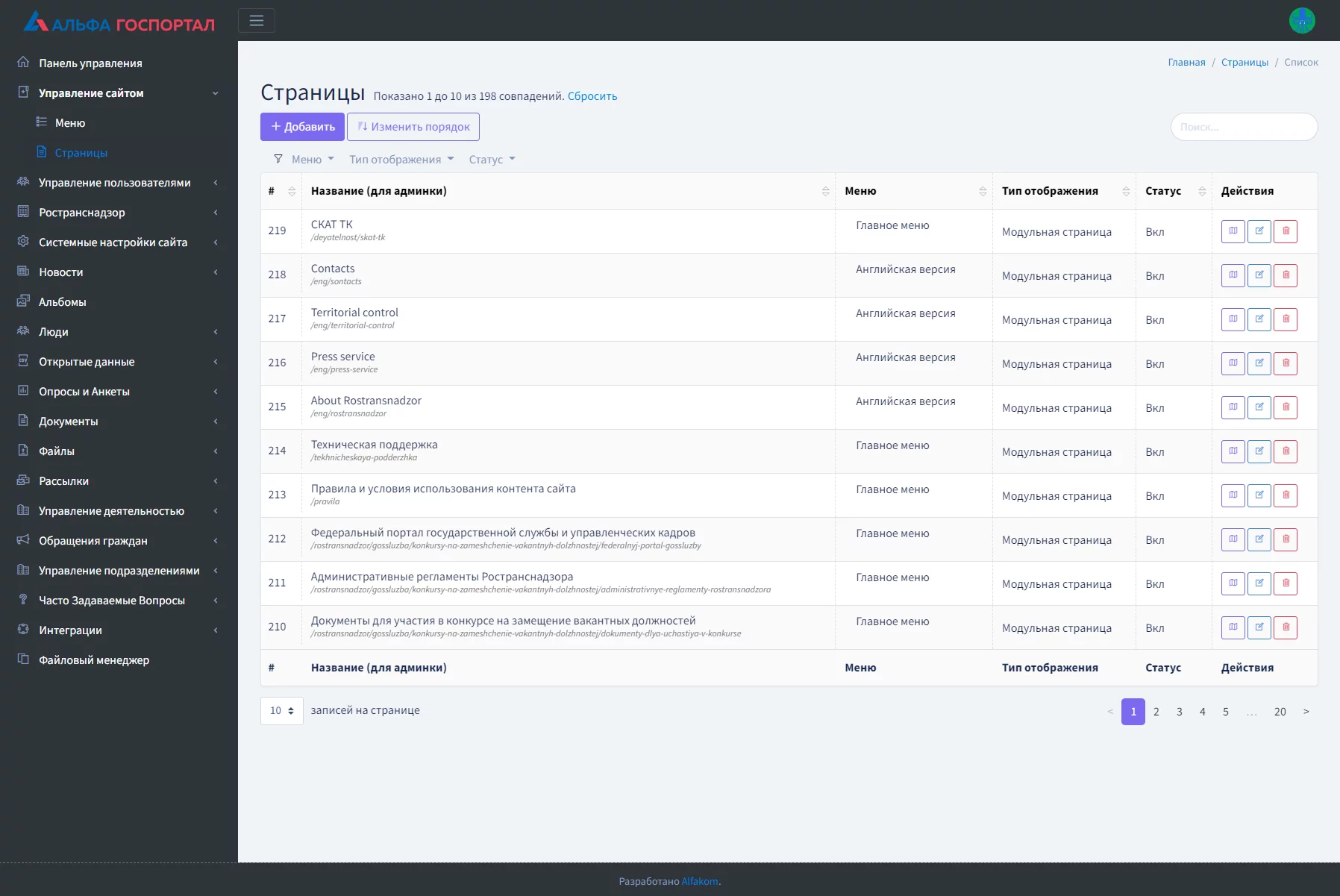 Продукт Альфа Платформа («ГОСПОРТАЛ * АЛЬФА CMS») Общества с ограниченной ответственностью "АЛЬФАКОМ" включен